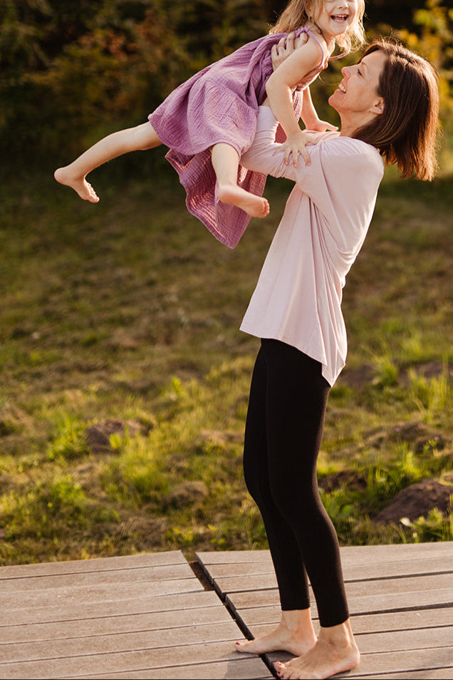 I remember borrowing old-school pieces from ourmother's wardrobe, restyling them, and wearing them for years – some of which I still have today. When I became pregnant, I didn’t want to buy maternity clothes that would only last for a few months. Instead, I wore my partner’s shirts and dreamed of universal pieces – items I could continue wearing as a woman, regardless of the phase of life I was in. Doula, Kids Yoga Teacher and mom of 3 (13, 5 & 1) - supporting my sister with fresh ideas, warm heart and courage.